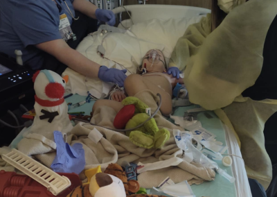 On Thursday December 5th, they informed us that Elijah had only 5%-10% kidney function. My heart shattered. I was hoping so badly that he wouldn’t go into renal failure, but he did. He was placed on hemodialysis. Along with dialysis, he also received 2 blood transfusions. While hospitalized, he came down with parainfluenza and mycoplasma pneumonia, but recovered well from these. He endured severe edema along with pulmonary edema, which was slightly relieved with each dialysis session. Elijah had to have physical therapy to stand and walk again because of how severe this disease affected him.