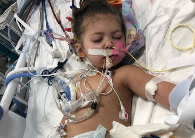 Our younger daughter, Lowen was 23 months old at the time. She had been sick for a few days, thinking it was your typical “kid who attends daycare” sickness. After three days of no signs of her getting better, we took her to the Emergency Room at Capital Region, where she was born. After evaluating her, they did not hesitate to send us straight to the PICU at Women’s and Children’s Hospital in Columbia. I will never forget when a group of 8 doctors, dressed in all yellow gowns, masks and gloves came in and gave us her diagnosis.