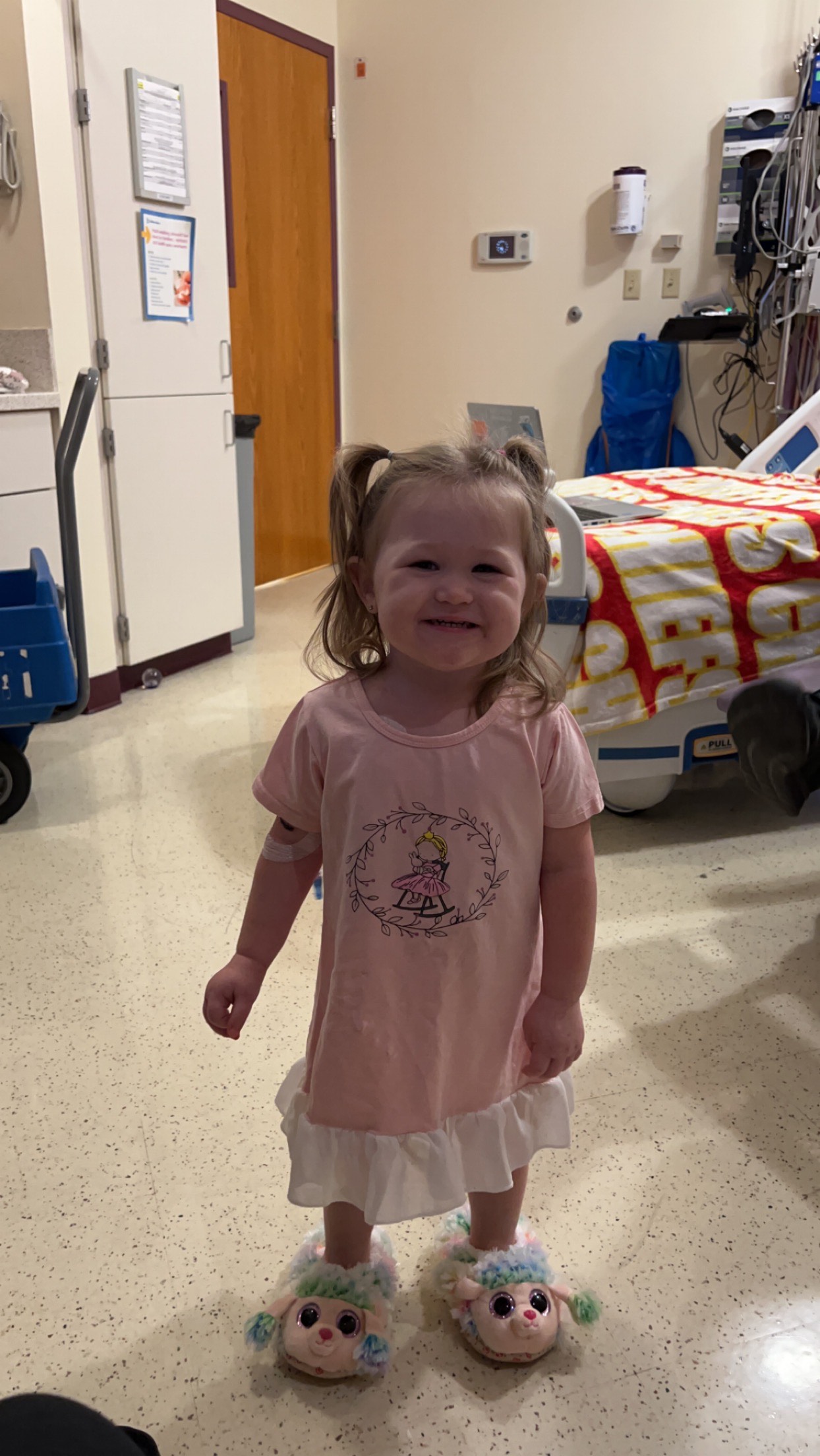 We are so fortunate that Olivia has made the recovery that she has. She no longer takes blood pressure medication or does daily blood pressure checks. She still has anxiety with her doctor’s appointment. As long as we can prepare her a week ahead of time, she can cope. It makes me sad how she sits there like a champ at 3 years old and doesn’t even flinch with a blood draw. It took her two years to sleep in her own bed again. We are happy to report as of August of 2025, she has transitioned back to her own room and bed.