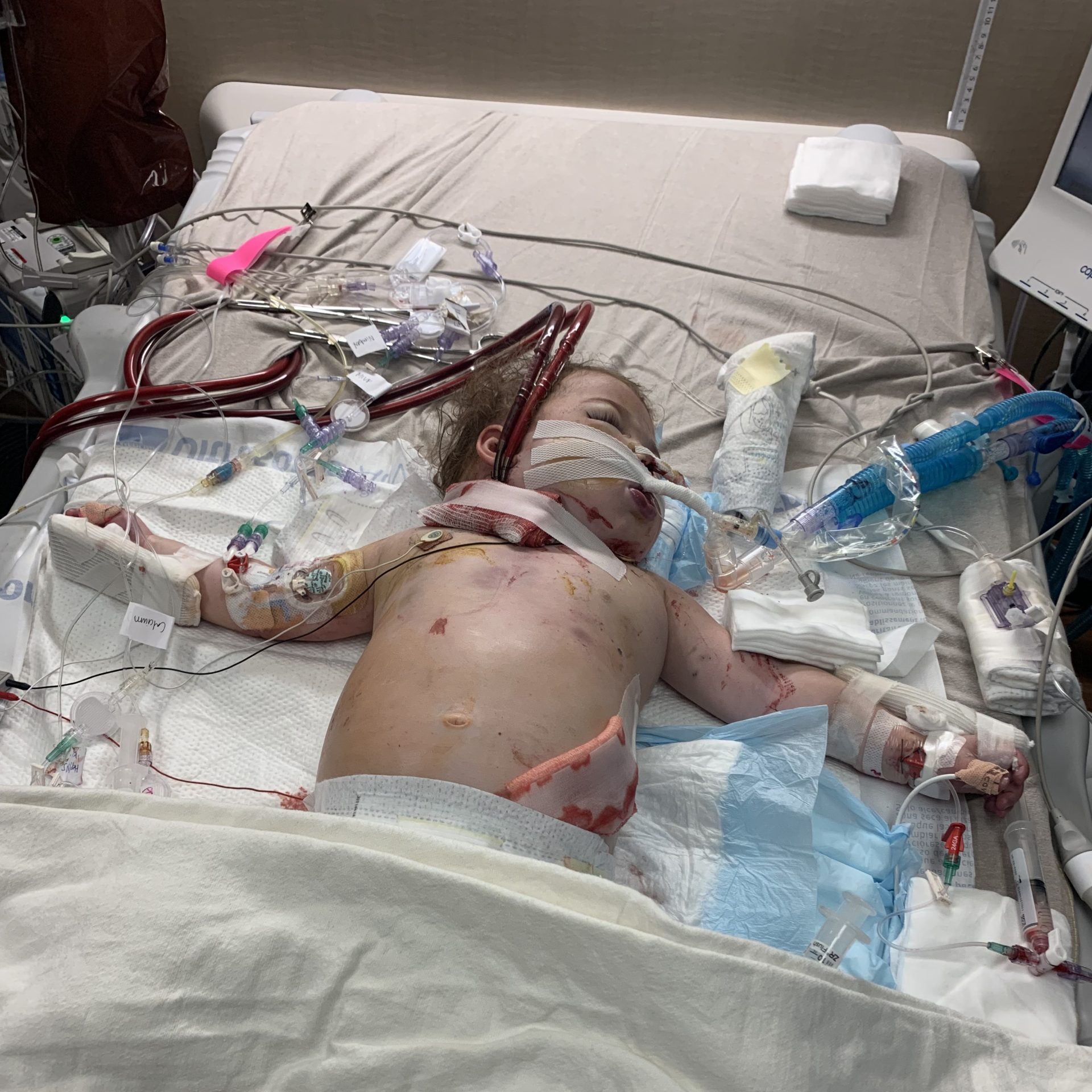 After an unknown amount of time passed the two surgeons came and spoke with us. They looked defeated. No one could even make eye contact with us. They said there was maybe a one percent chance of survival, but that as of right now she is alive. Scarlett remained on ECMO for 8 days. We were told there may be brain damage and an MRI would be needed to determine the extent of the damage.