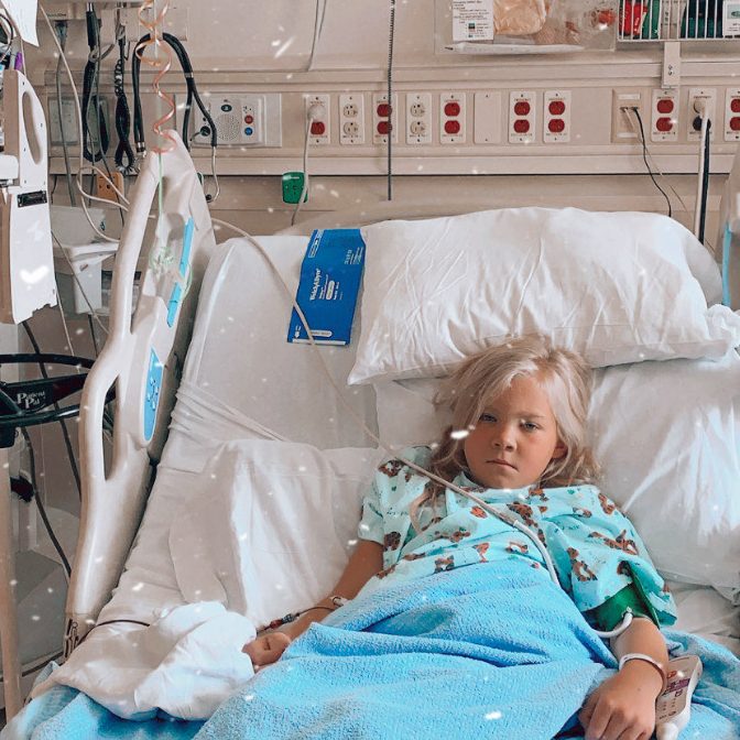 Two weeks after Piper became ill, 9 year old Tynlee, had one day of vomiting and diarrhea. Two weeks passed and on July 16th, she pooped pure blood every hour. The pain was so severe, she was crying. We took her to our local hospital and she was immediately transferred to a children’s hospital in Seattle. After 8 days, she was sent home. She slept all day and declined quickly. We returned to the hospital and on July 24th, she was diagnosed with Hemolytic Uremic Syndrome (HUS). Her platelets were at 26.
